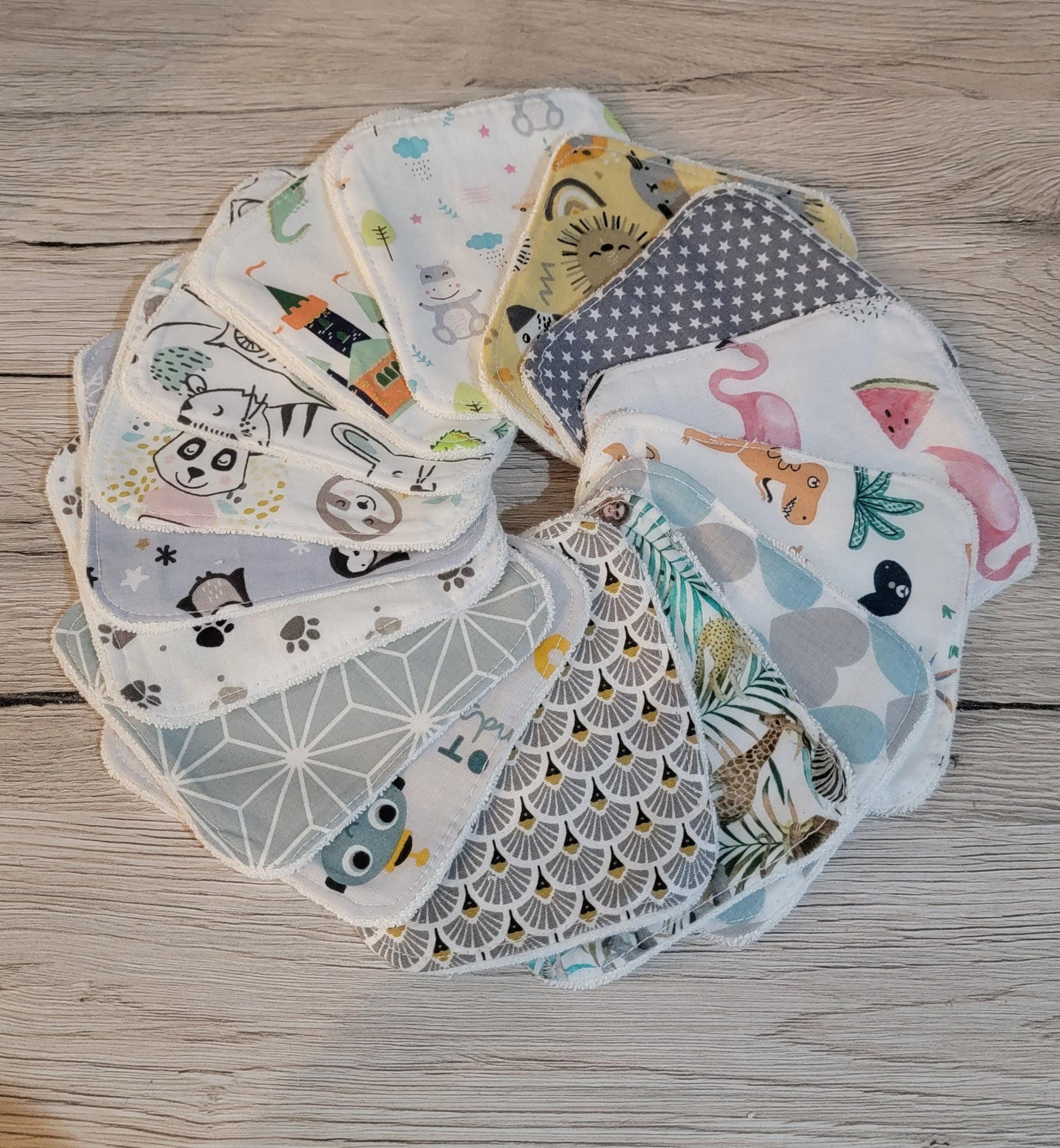 Conçues pour le change de bébé, le démaquillage de maman ou le débarbouillage, elles offrent une alternative réutilisable, pratique et écologique. Leur tissu absorbant assure un nettoyage efficace tout en préservant la délicatesse de chaque peau. Un indispensable durable pour les soins quotidiens.