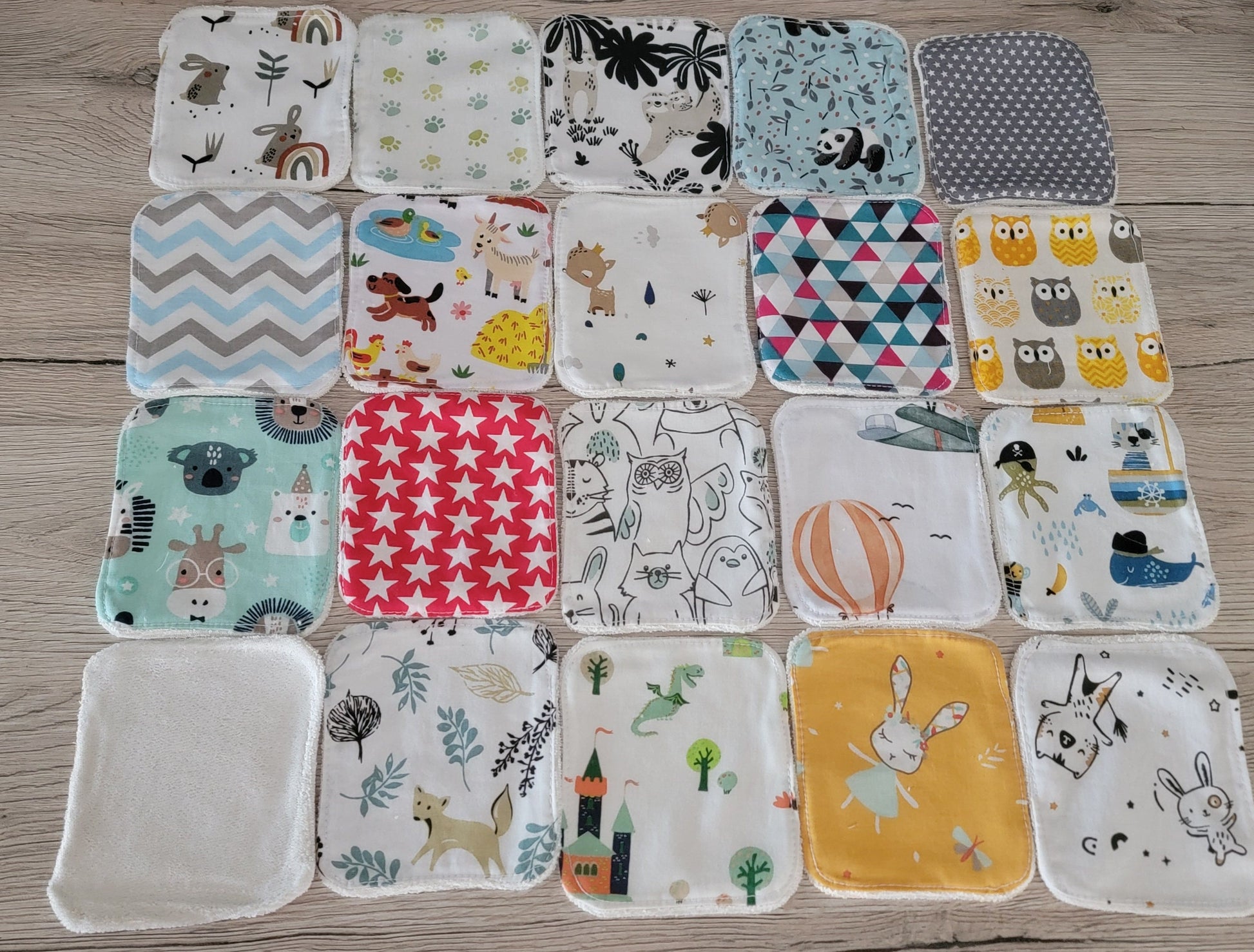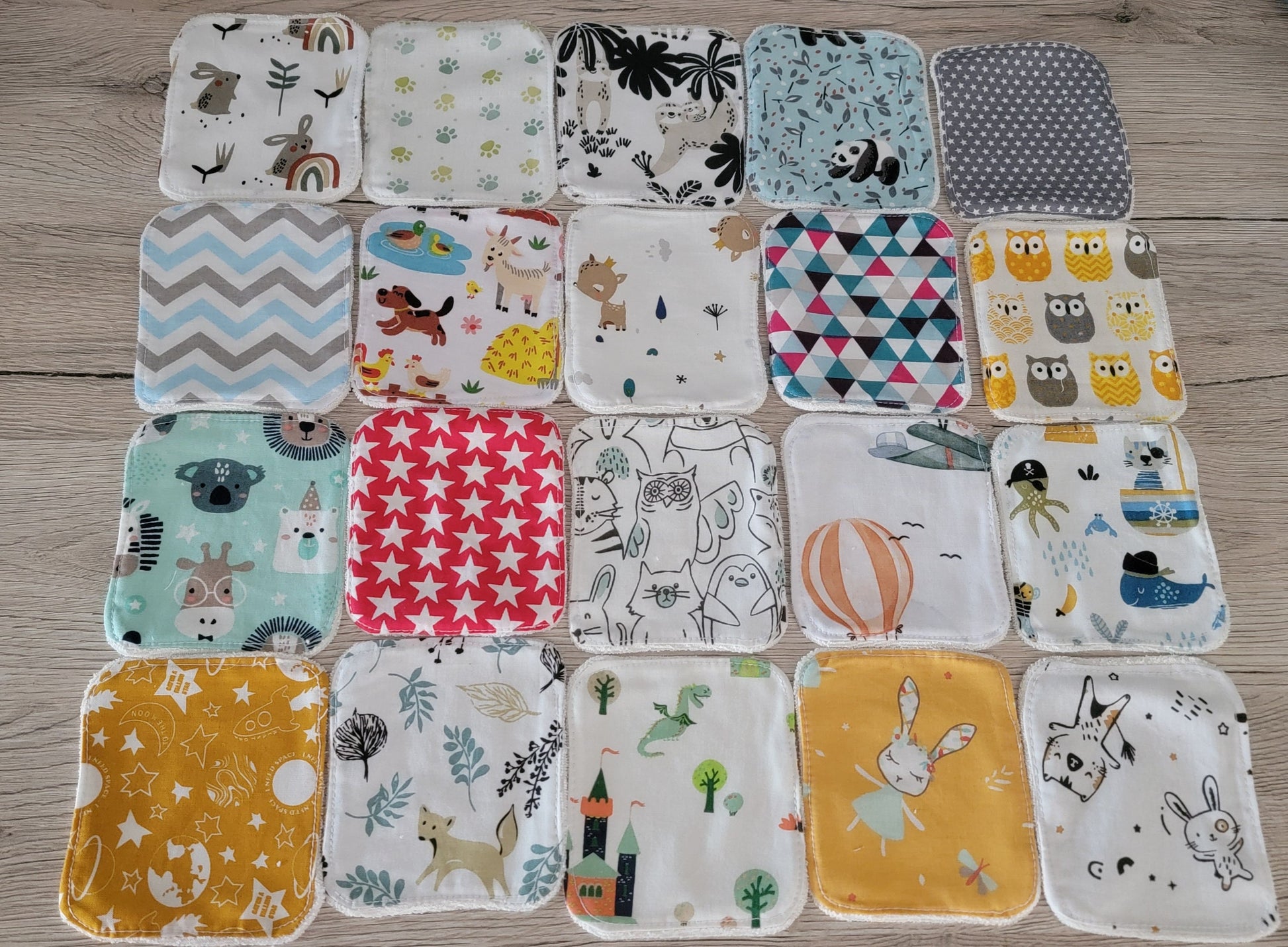 Lingettes lavables en tissu, alliant coton doux et éponge de bambou certifiée Oeko-Tex. Ces lingettes écologiques garantissent une absorption optimale tout en étant respectueuses de la peau et de l’environnement. Réutilisables et durables, elles représentent une alternative saine et économique aux lingettes jetables, parfaites pour les soins quotidiens.