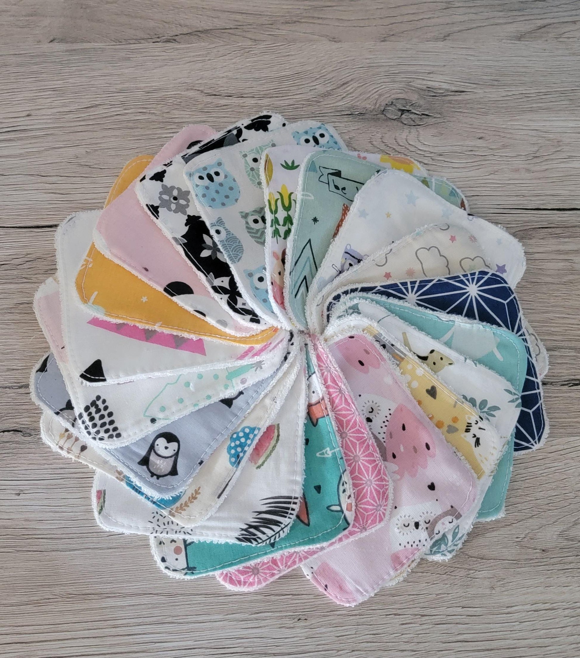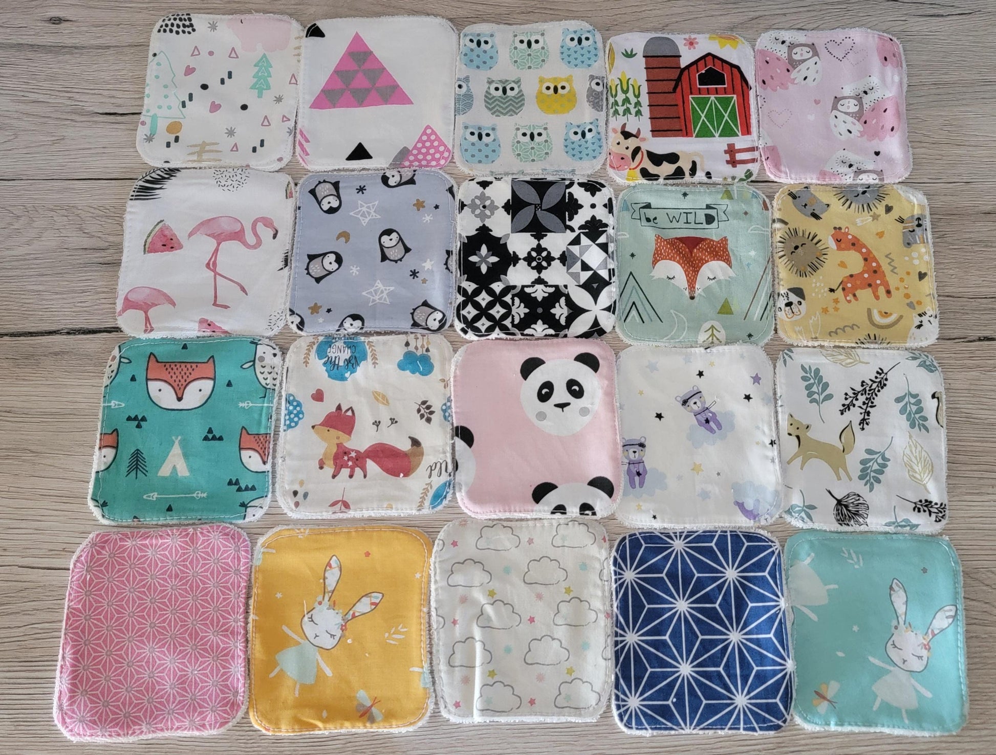 Lingettes lavables en tissu, alliant coton doux et éponge de bambou certifiée Oeko-Tex. Ces lingettes écologiques garantissent une absorption optimale tout en étant respectueuses de la peau et de l’environnement. Réutilisables et durables, elles représentent une alternative saine et économique aux lingettes jetables, parfaites pour les soins quotidiens.