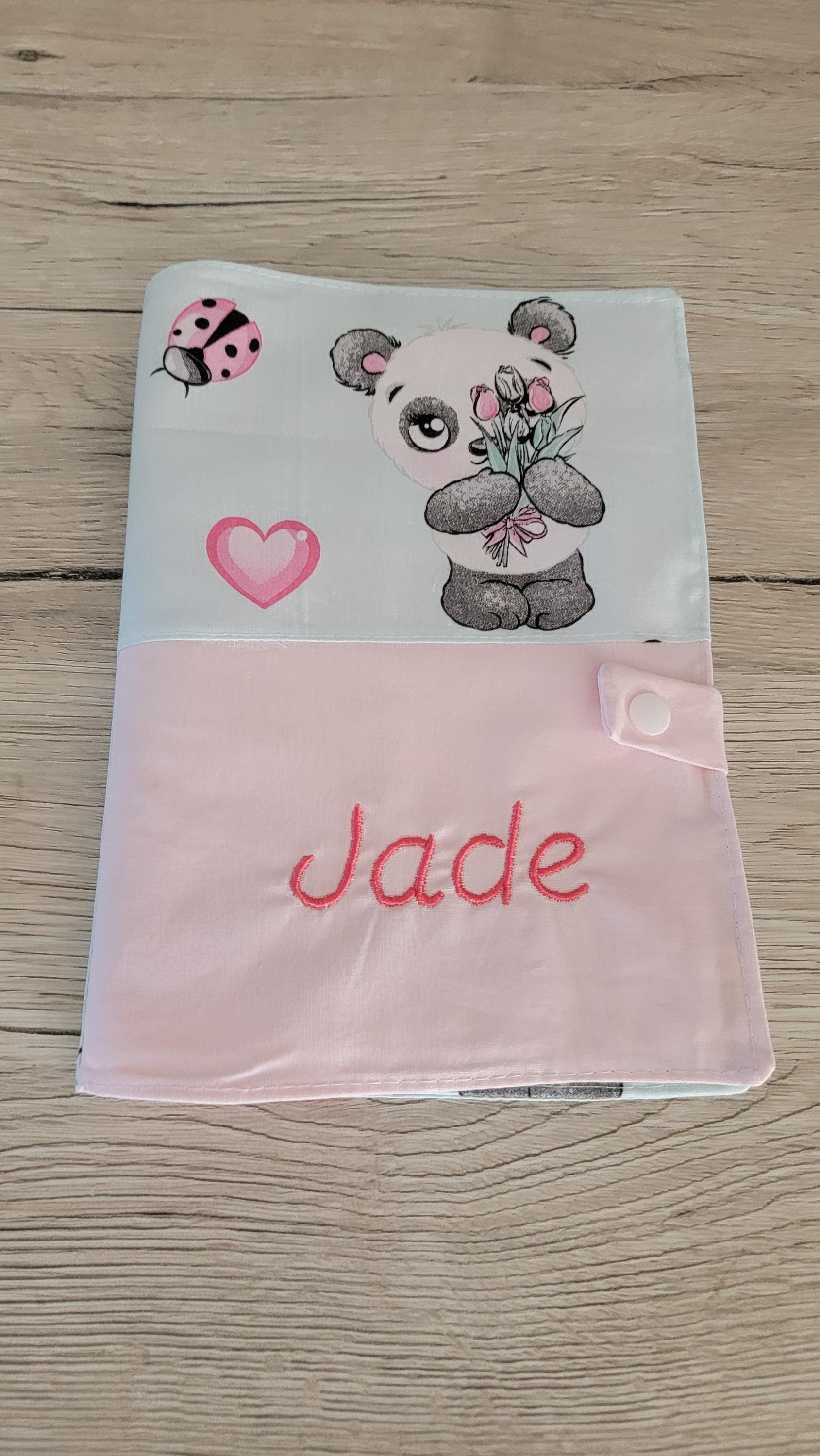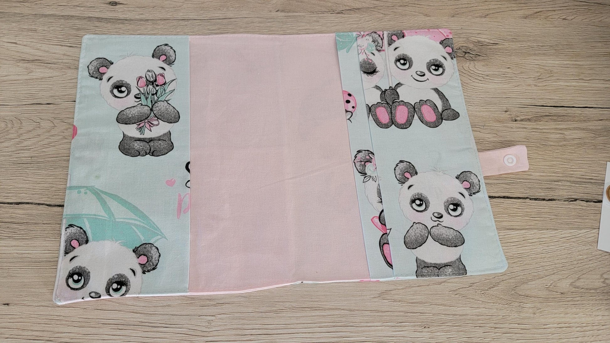 Voici un protège carnet de santé. Celui-ci est sur le thème des pandas.